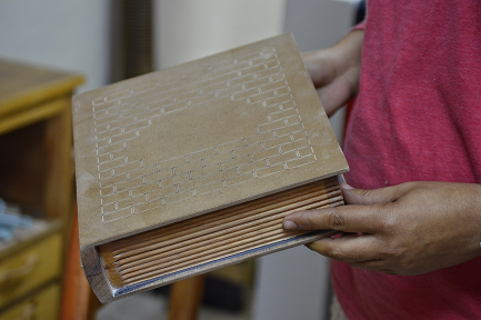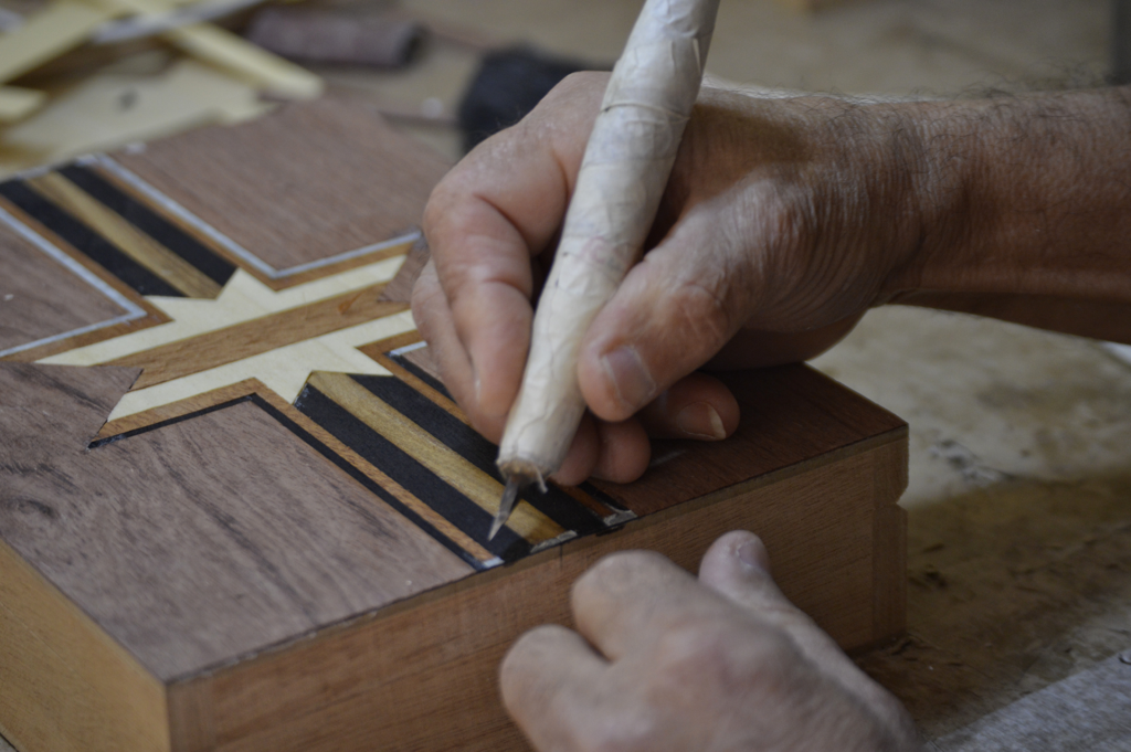 Revivimos oficios ancestrales como la ebanistería, la marquetería y la talla sobre la madera. A la par, implementamos otras aplicaciones artesanales y desarrollamos nuevas técnicas.